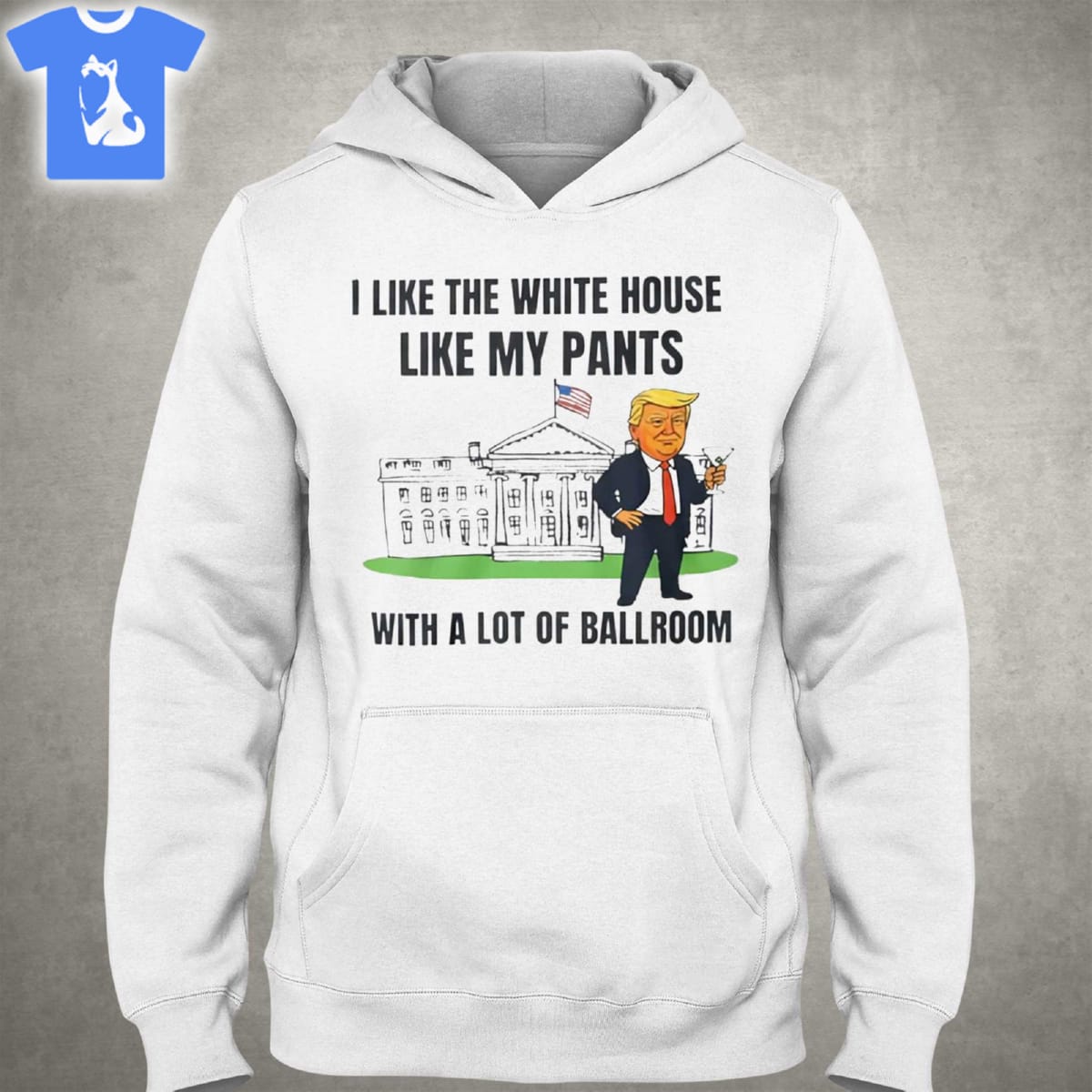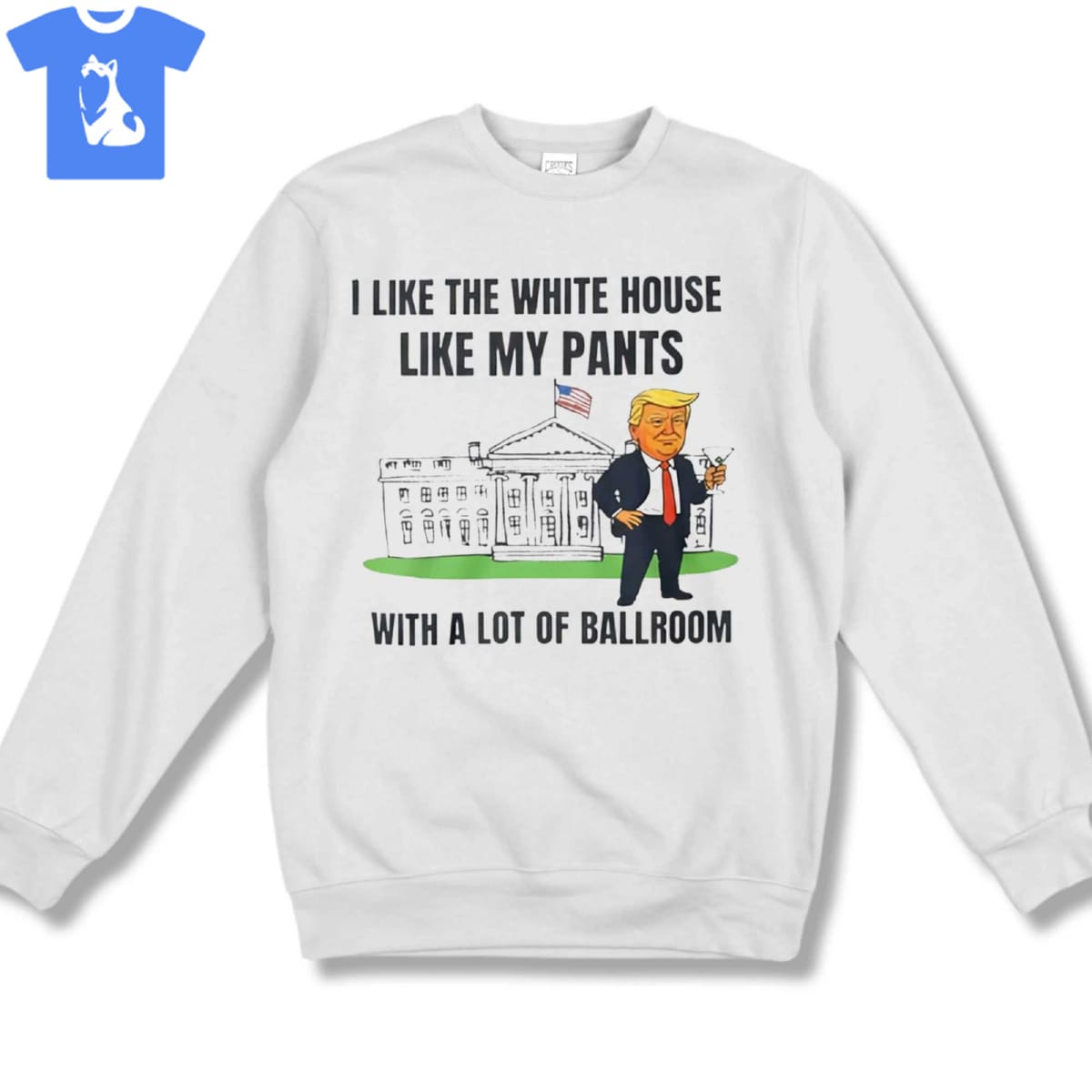 Donald Trump I Like The White House Like My Pants White A Lot Of Ballroom Shirt Long Sleeve Hoodie Sweatshirt Ladies Tees
