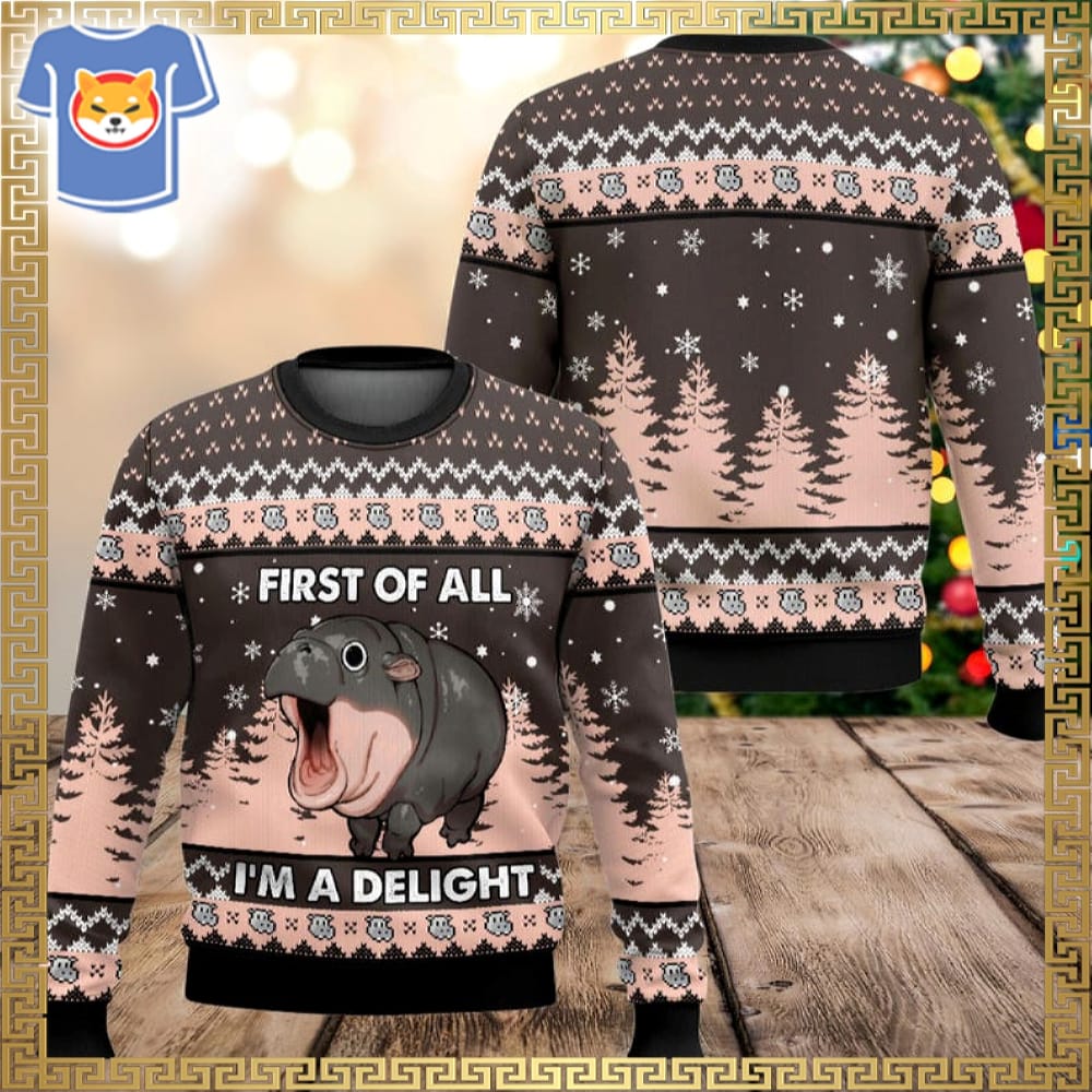 Hippo First Of All Im A Delight Ugly Christmas Sweater