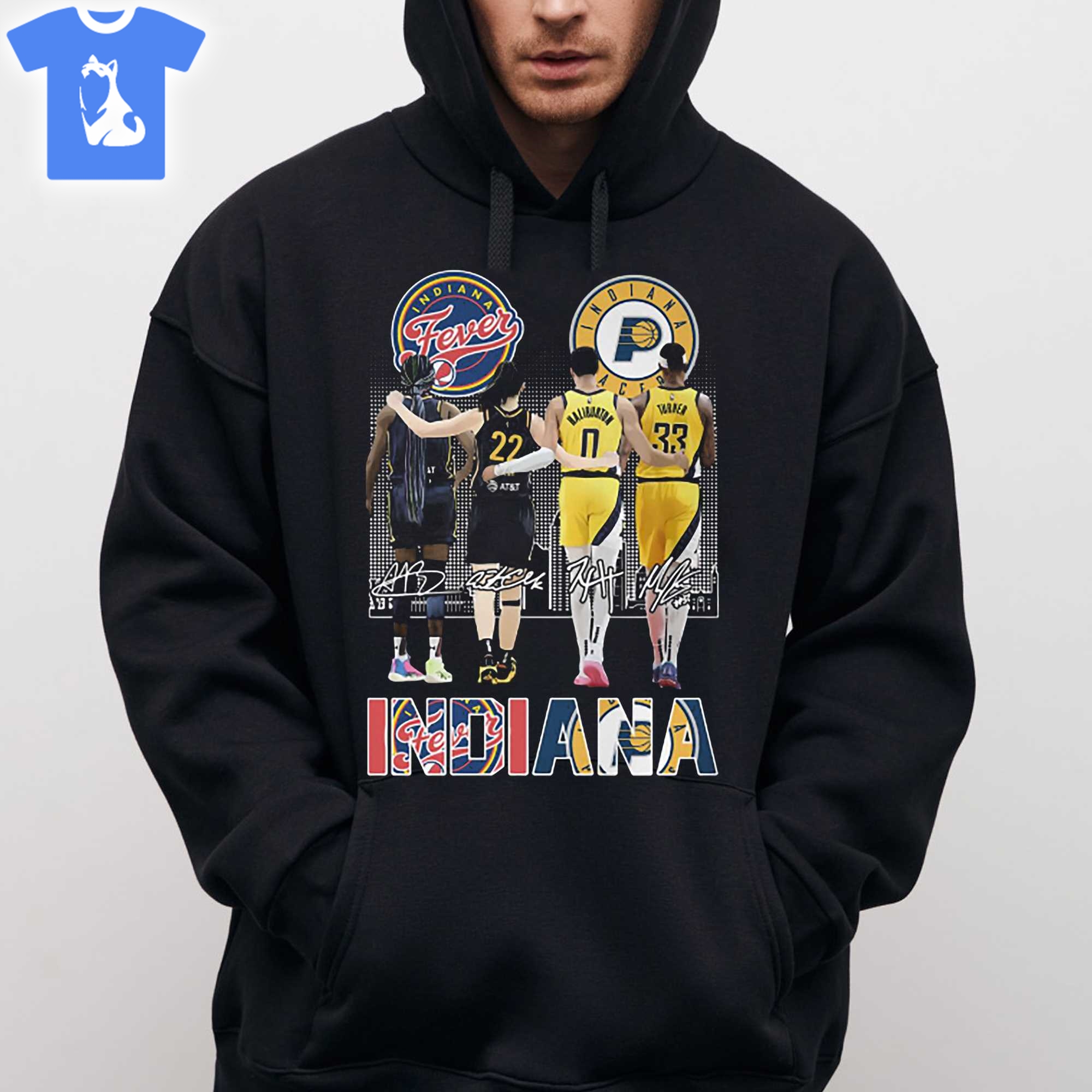 Celebrate your love for both the Indiana Pacers and Indiana Fever with this unique piece. Whether you wear it to show your support during a game or use it as a comfortable everyday sweatshirt, this T-shirt hoodie is a must-have for any true Indiana sports enthusiast. Join the ranks of dedicated fans and wear it proudly as you showcase your allegiance to Indiana basketball!