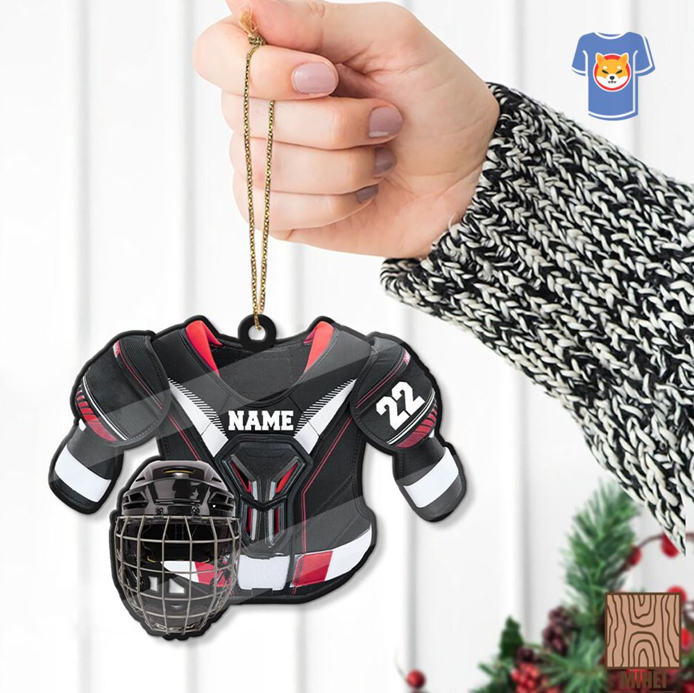 About Personalized Hockey Helmet Ornament Custom Hockey Shoulder Pads Christmas Ornament Ice Hockey Player Xmas Tree Decor Christmas Son Gifts Description
