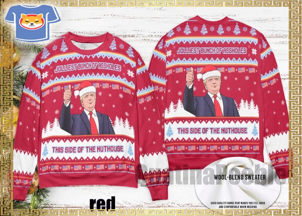 With Trump 2025 This Side Of The Nut House Ugly Christmas Sweater, As the chilly weather sets in and the holiday season rapidly approaches, I find myself eagerly anticipating not only the festive activities but also the chance to don one of my all-time favorite clothing pieces – the Ugly Sweater! In our contemporary era, this classic piece has, for a while, taken a backseat to various modern shirts. However, it’s heartening to observe a resurgence in the popularity of sweaters, particularly during these special times of the year. Here are some essential details about our Ugly Sweaters: