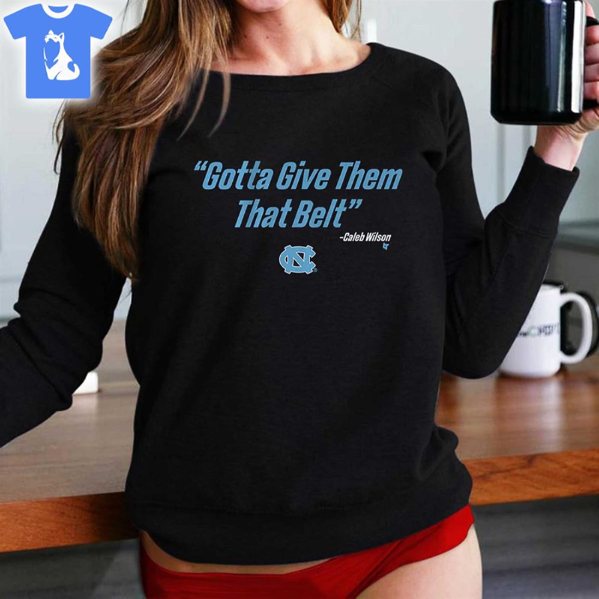 Unc Basketball Caleb Wilson Give Them That Belt Shirt Long Sleeve Hoodie Sweatshirt Ladies Tees