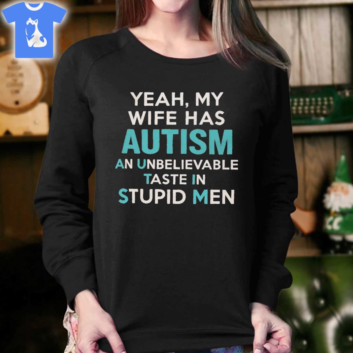 Yeah My Wife Has Autism An Unbelievable Taste In Stupid Men Shirt Long Sleeve Hoodie Sweatshirt Ladies Tees